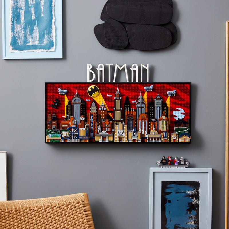 Basado en la serie de arte construible de Lego, este set se asemeja más a una pintura 3D construible que a un set de Lego tradicional. Representa el horizonte de Gotham con influencias de art-deco y varios lugares emblemáticos de la serie, como el Tribunal de Gotham City, el Asilo Arkham, el parque de atracciones de Joker, entre otros. Además, incluye pequeñas versiones construibles del Batimóvil y el Batwing, junto con el icónico Bat Signal iluminando el cielo nocturno.